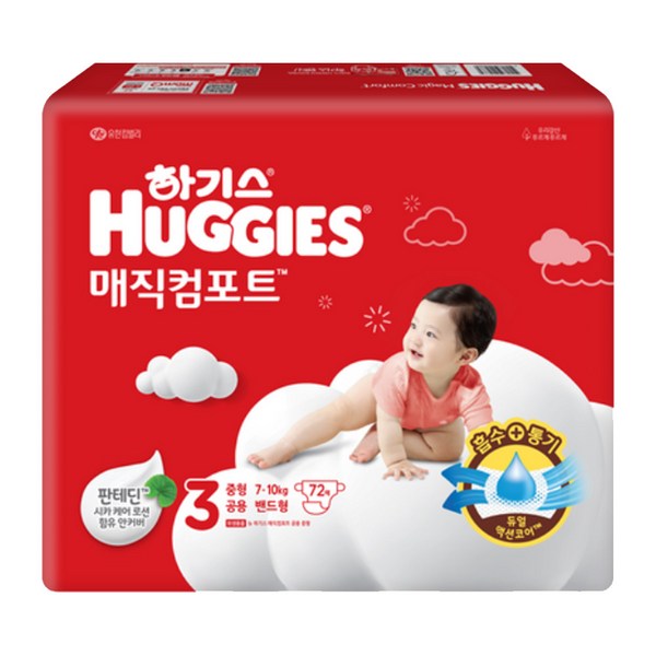 27번: 하기스 매직컴포트 3단계 밴드형 기저귀 공용 중형 72매, 중형(M)
