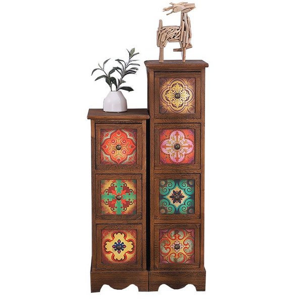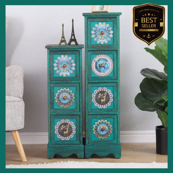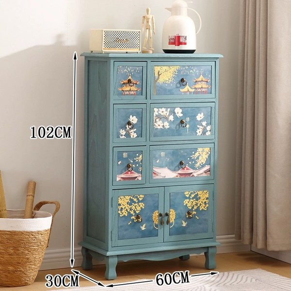 15번: 앤틱 원목 콘솔 가구 거실 침실 서랍장 수납 장식장 진열장 유럽 인테리어 협탁 고풍, 화물택배로 이관 시 배송비가 발생할 수 있습니다., LZ011블루그린2단