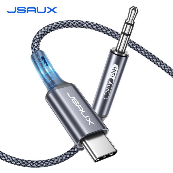 9번: JSAUX 오디오 C타입 to AUX 케이블 차량용 옥스선 HIFI 음질 스마트 DAC 칩 그레이 1m, 1개