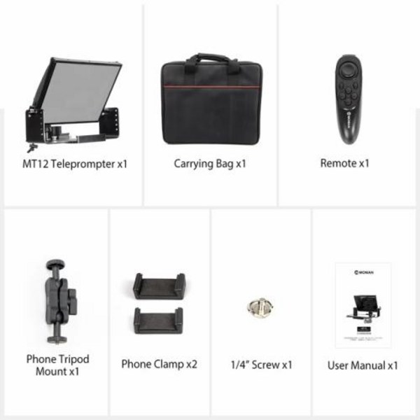 13번: 유튜브 방송 프롬프터 -12 휴대용 미니 스마트폰 카메라 비디오 녹화 라이브 스트리밍 인터뷰 접이식, Moman MT12, 1개