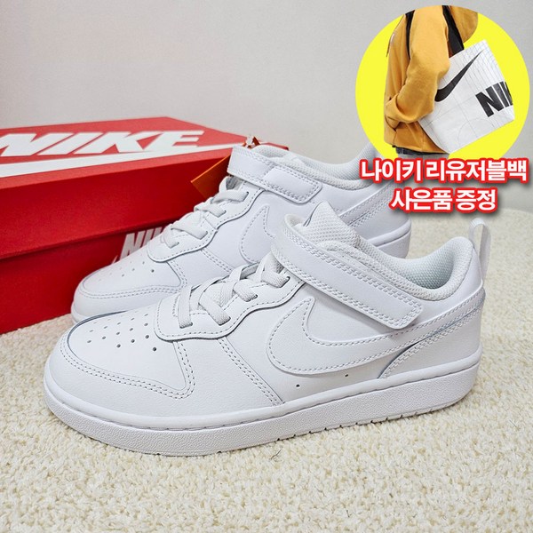 27번: 나이키 키즈 코트버로우 올흰 초등학생 찍찍이 운동화 스타일 깔끔하고 발편한 아동화 리유저블백증정