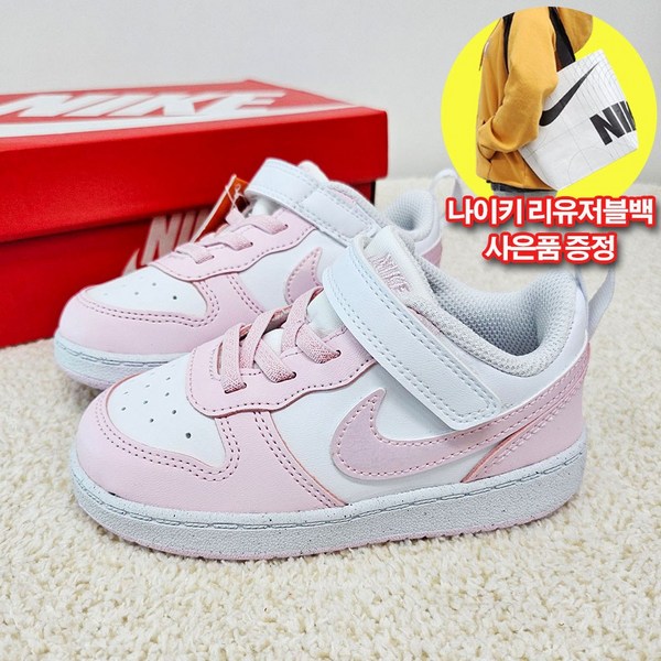 30번: 나이키 아기 예쁜 운동화 베이비슈즈 핑크 코트 버로우 찍찍이 돌아기신발 선물 리유저블백증정