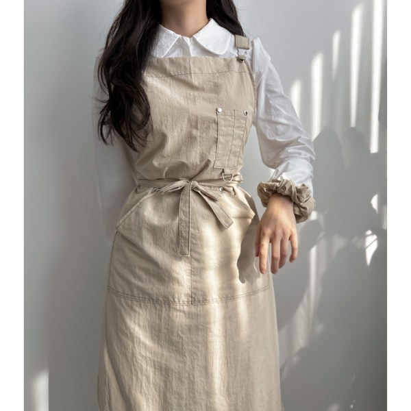 9번: [마띠아]애견 미용 가운 스티치 멜빵 원피스 방수 앞치마 유니폼 바리스타 카페 네일 꽃집 미용사