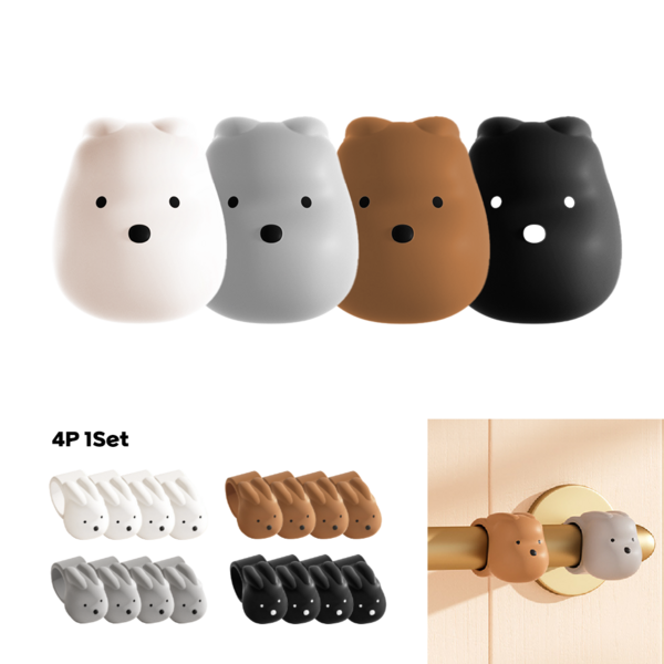 3번: 문콕 방지 말랑말랑 실리콘 보호패드, 갈색 곰, 4개