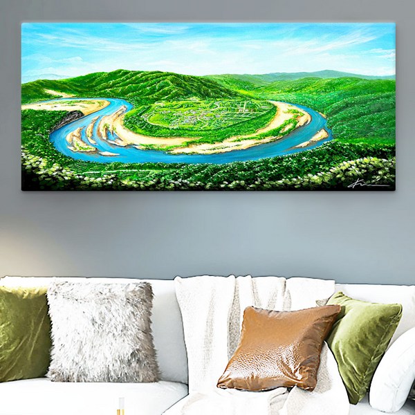 5번: 건강운 재물운 성공운 안동하회마을 (명당도)액자 배산임수그림 풍수그림 작가가그린 그림