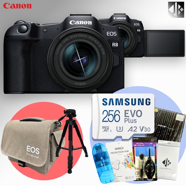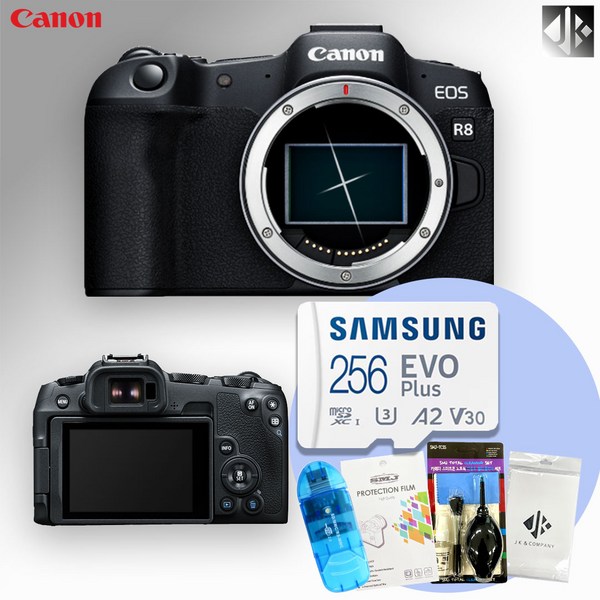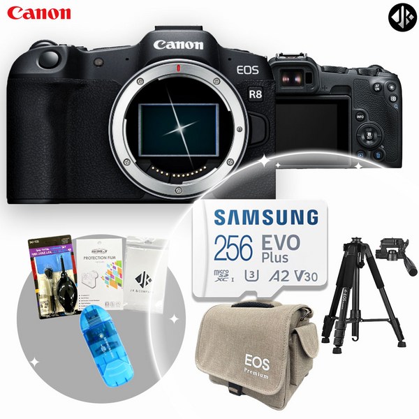 19번: [포토리뷰이벤트] 캐논 EOS R8 BODY + 메모리256GB+가방+액정보호필름+융+청소도구+SD리더기+삼각대/ WJK, EOS R8+메모리256GB