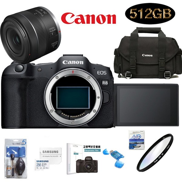 16번: CANON EOS R8 24-50mm F4.5-6.3 IS STM KIT+SD512GB+정품가방+KENKO AIR UV 필터+크리닝킷+LCD필름+리더기 고용량 풀패키지