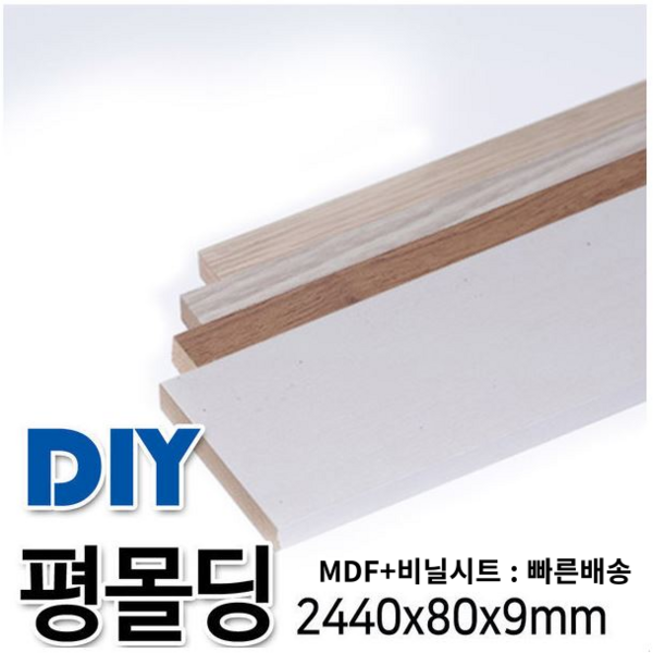 23번: MDF+비닐시트 평몰딩 2440x80x9mm 4가지 색상, 화이트펄