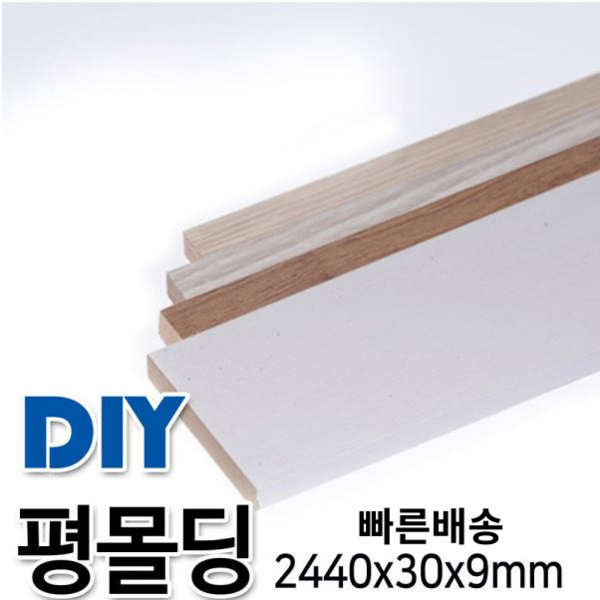 12번: 인테리어 몰딩 DIY 보수 평몰딩 평판몰딩 30MM X 2400MM, 1개, 30*9 135번 미스티오크
