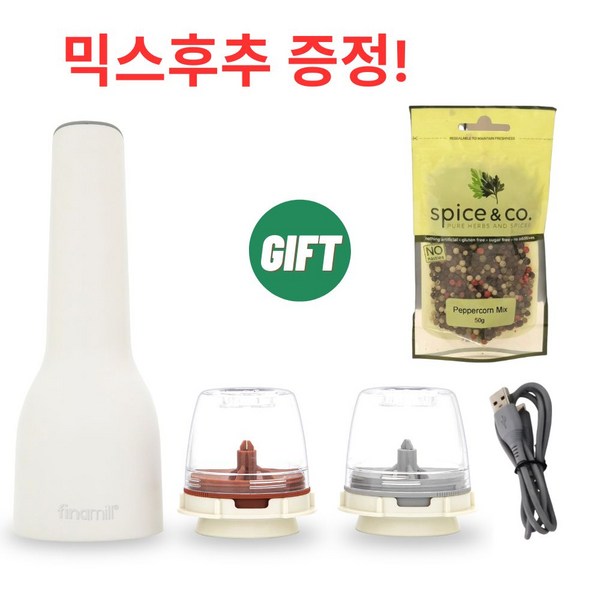 8번: [FinaMill] 파이나밀 2세대 USB 전동그라인더 화이트 심플세트, 1세트, 단품