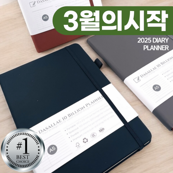 30번: 다살래 100억 부자 A5 다이어리 플래너(만년형 하드커버 스트랩), 블랙