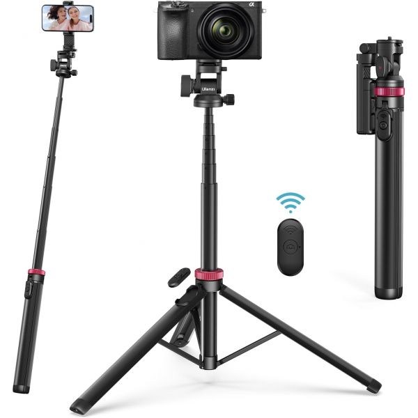 17번: 울란지 MT-78 확장형 휴대폰 삼각대 72.83인치 셀카봉 카메라 스탠드 2인치 클립 360° 볼 헤드 아이폰 소니 캐논용 콜드 슈 여행용 경량화, 1개