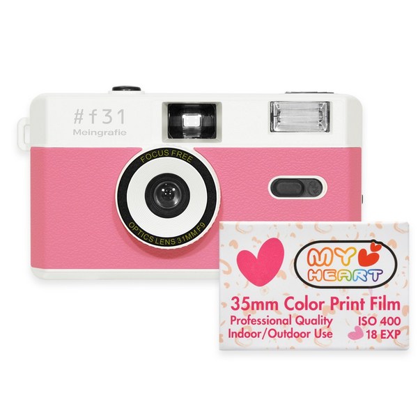 20번: 마인그라피 f31 다회용 필름카메라+필름 세트, 분홍, 1개