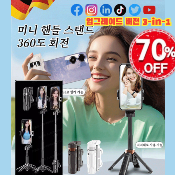 11번: 360도 회전 블루투스 미니 셀카봉 거치대 / 휴대용 블루투스 핸드폰 거치대 플로어 사각대 여행 미니 셀카봉 회전핸들 거치대, 미니셀카봉블랙(무등), 1개