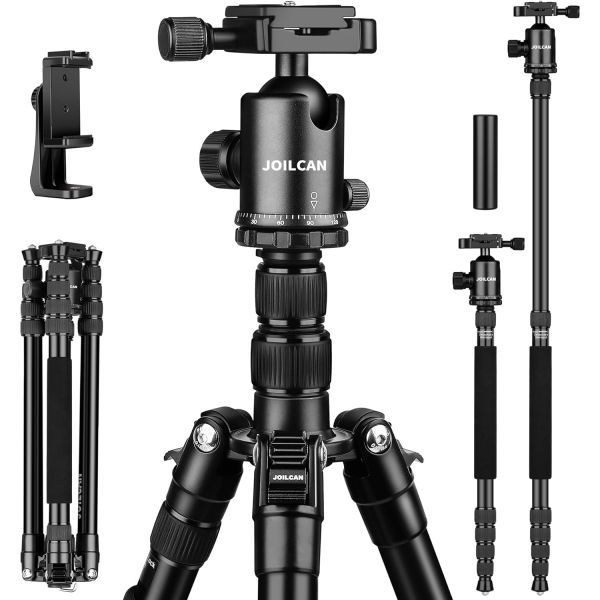 19번: 카메라 및 전화용 80 85인치 헤비 듀티 삼각대 모노포드 DSLR 쌍안경 스팟팅 스코프 캠코더 비디오 스탠드 360도 볼 헤드 35파운드 적재량, 85 Inch_Black, 1개