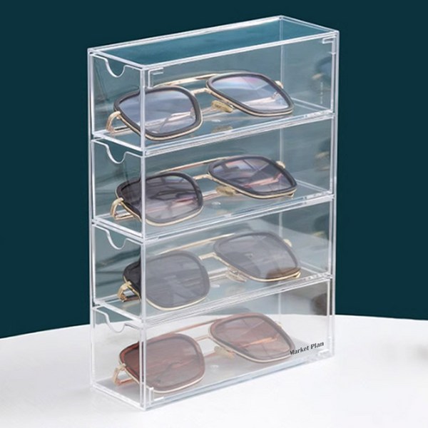 16번: 주앤지 서랍형 아크릴 안경 선글라스 4단 투명 케이스, 1개
