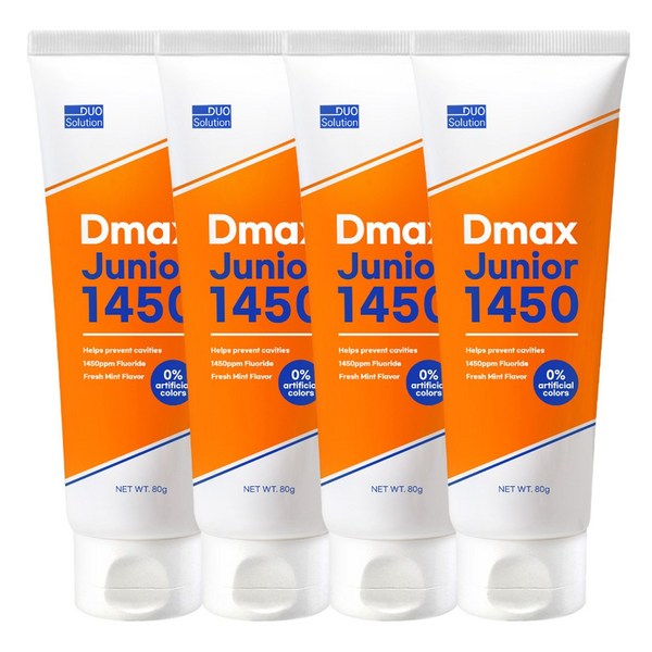 24번: 듀오솔루션 디맥스 주니어 1450ppm 고불소 민트향 어린이 치약, 80g, 4개