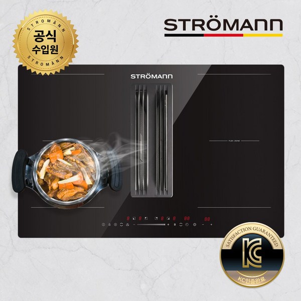 6번: 독일 스트로만 후드일체형 인덕션 한국공식수입원 KC인증 무상AS보장 NO추가비용 당일배송 매립형 4구, 빌트인, 블랙 쇼트세란 상판