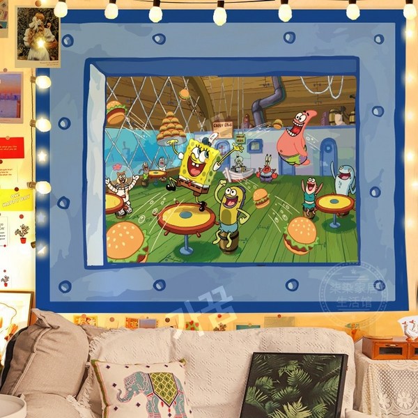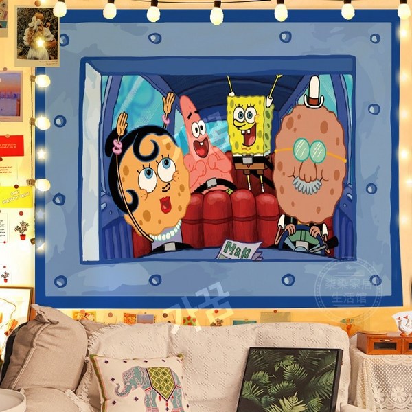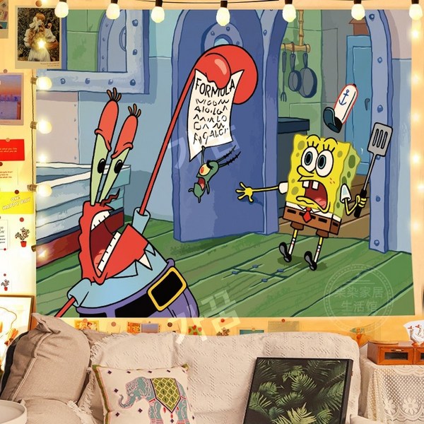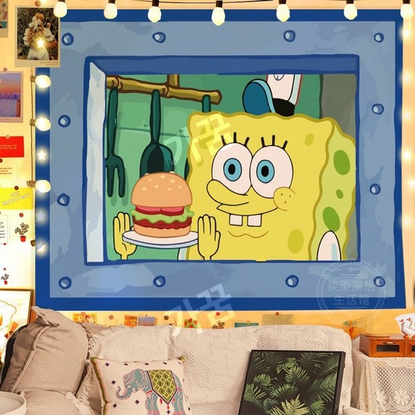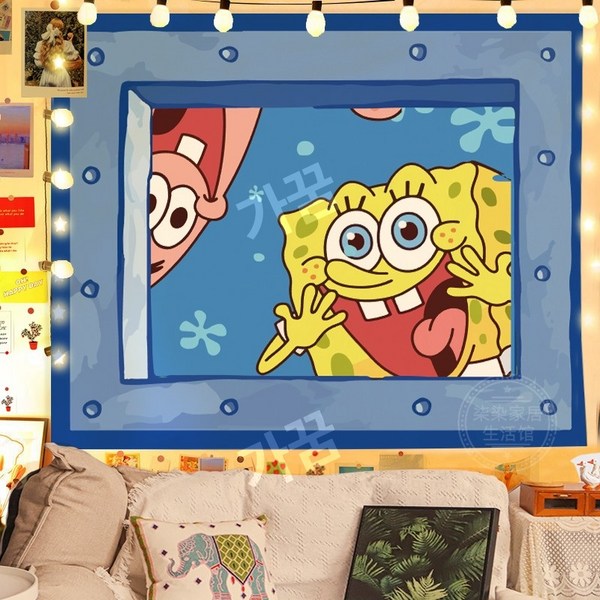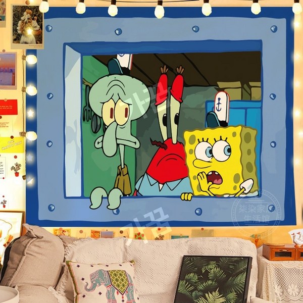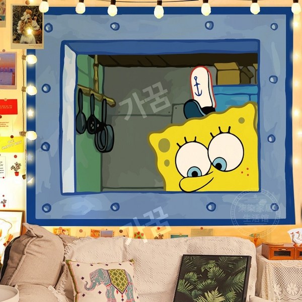2번: 스폰지밥 패브릭포스터 침실 거실 인테리어 꾸미기 벽가리개 커튼, 시큰둥