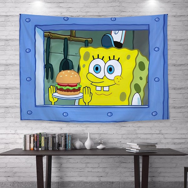 17번: 스펀지밥 집게리아 징징이액자 창문 패브릭 포스터 인테리어, D58-12 던지기 햄버거 스펀지