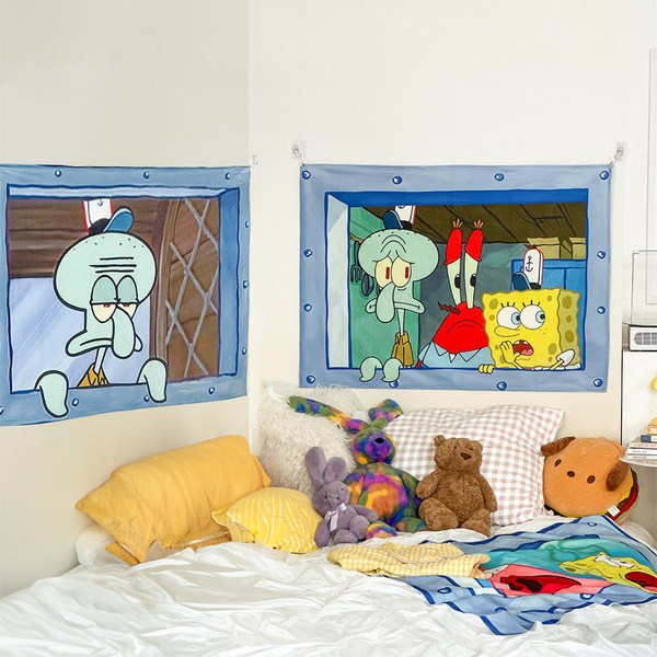 25번: 스펀지밥 패브릭 포스터 생일파티 인테리어 재밌는 기숙사 방 꾸미기 뚱이 징징이, F