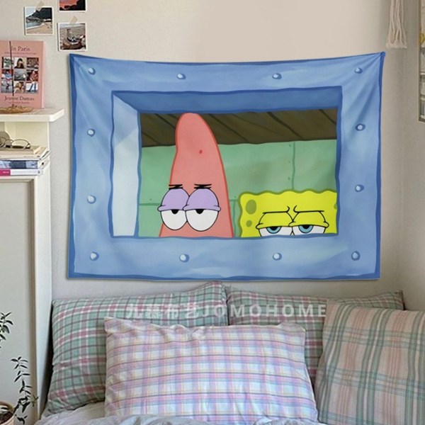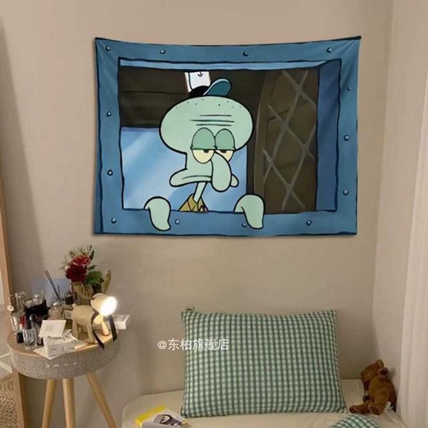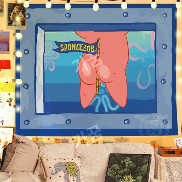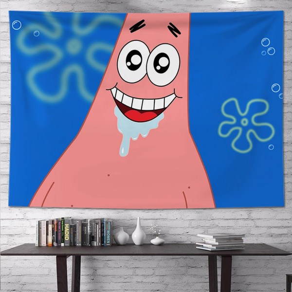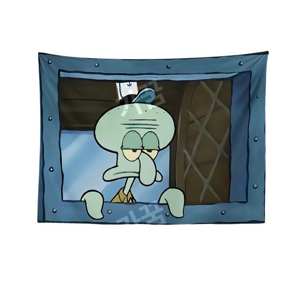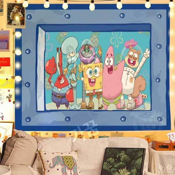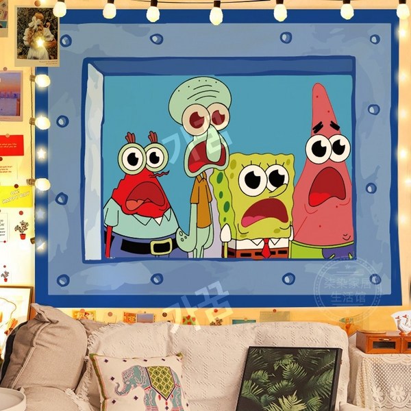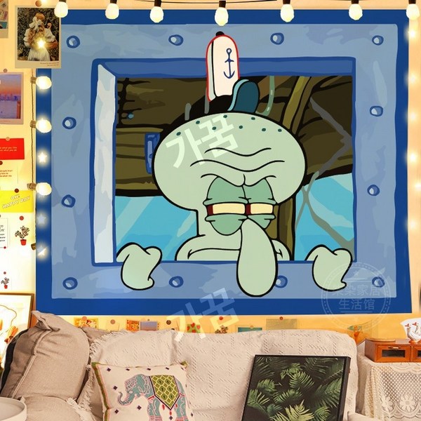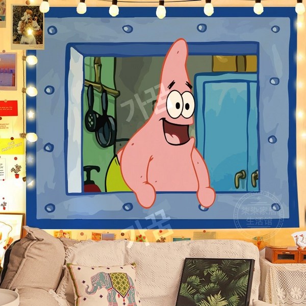 22번: 스폰지밥 패브릭포스터 침실 거실 인테리어 꾸미기 벽가리개 커튼, 시큰둥