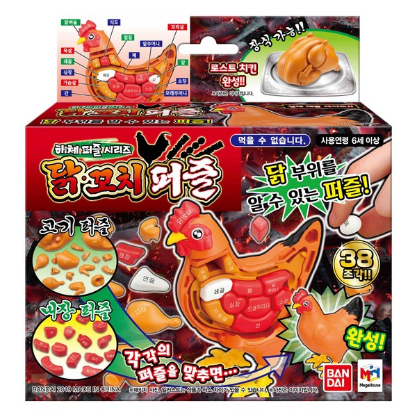 22번: 메가하우스 반다이 3D 해체 퍼즐 시리즈 닭꼬치, 38피스, 혼합색상, 1개