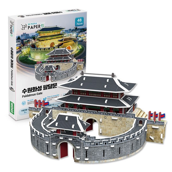 19번: 페이퍼락 수원화성 팔달문 입체퍼즐 WA116, 1개, 혼합색상, 48피스