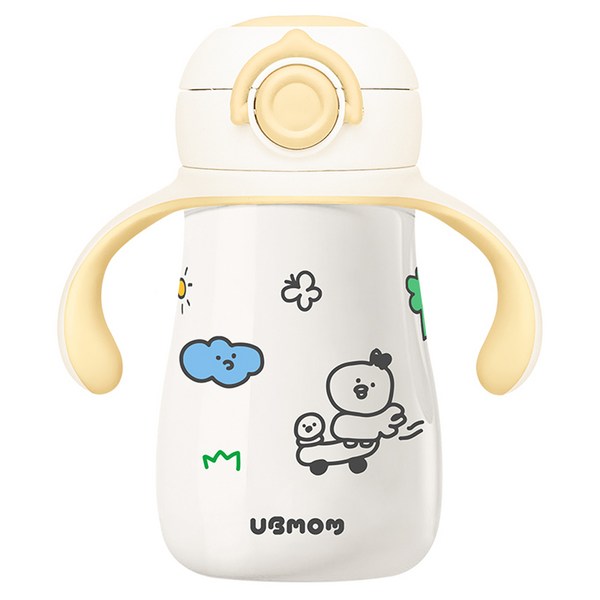 28번: 유비맘 유아용 스테인리스 데일리 원터치 빨대컵 260ml, 옐로우, 1개