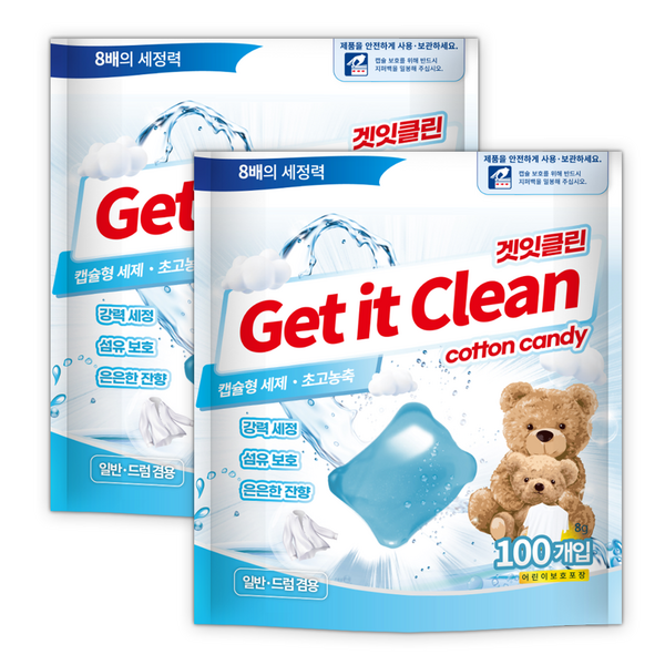 27번: 겟잇클린 캡슐 세탁세제 코튼캔디, 2개, 100개입