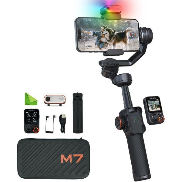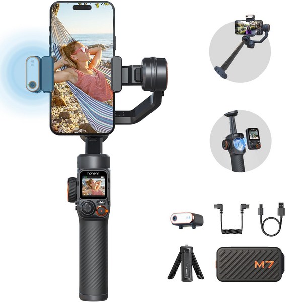 26번: 스마트폰용 호헴 아이스테디 M7 짐벌 스태빌라이저 마그네틱 AI 트래커 필 라이트 탈착식 터치스크린 리모컨 내장 연장봉 아이폰 안드로이드용 500g 페이로드, 스마트폰용 호헴 아이스테디 M7 짐벌 스태빌라이저 마그, 1개