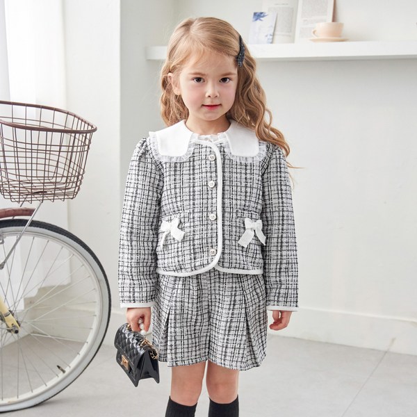 28번: 마리앤모리 여아용 러블리 트위드 가디건 상하의 세트