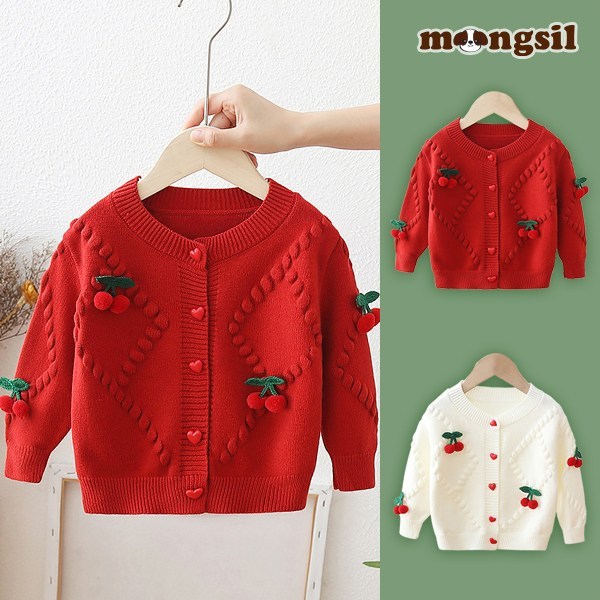27번: 몽실이 하트버튼 폼폼체리 가디건 여아 유아 외출복
