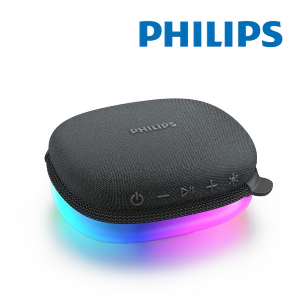 29번: 필립스 휴대용 미니 소형 무선 블루투스 스피커 방수 TAS2307 캠핑 야외 등산 낚시 아웃도어 자전거 무드등 LED, 블랙