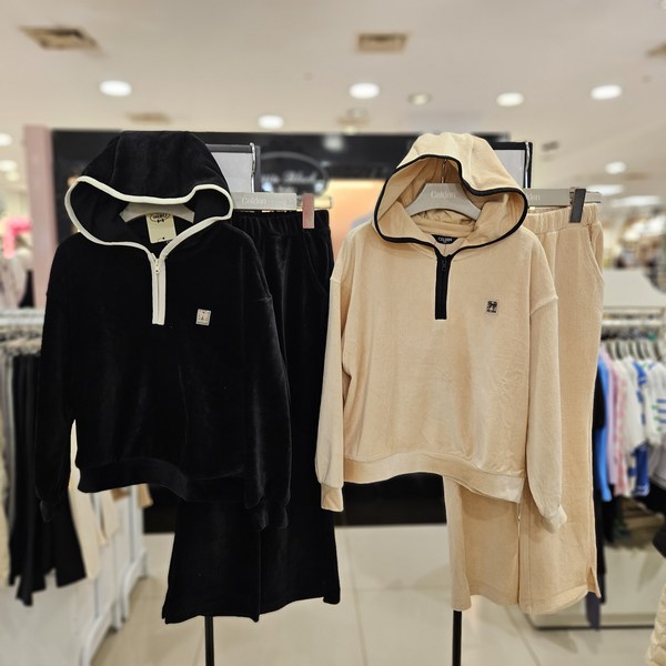 10번: 셀덴 [동아백화점 수성점] 50% 겨울 여아 키즈 주니어 캐주얼룩 반집업 후드 맨투맨 벨로아 밑단 옆트임 부츠컷 상하 세트 EDMT24T25-01