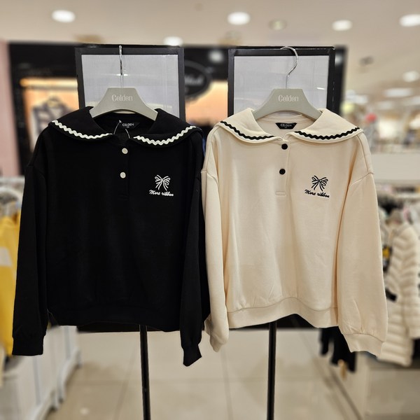 8번: 셀덴 [동아백화점 수성점] 겨울 50% 여아 아동 키즈룩 물결 테잎러 카라 융기모 카라 박시핏 맨투맨 티셔츠 EDMA24T27-01