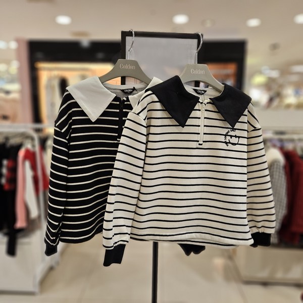 21번: 셀덴 [동아백화점 수성점] 60% 겨울 시즌 여아 아동 키즈 스마일 자수 반오픈러 카라 스트라이프 기모 티셔츠 EDMA23D16-01