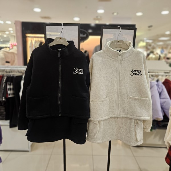 19번: 셀덴 [동아백화점 수성점] 60% 겨울 시즌 여아 아동 키즈 오픈 집업 크롭 기모 맨투맨 아웃 포켓 스커트 세트 EDMT23D11-01