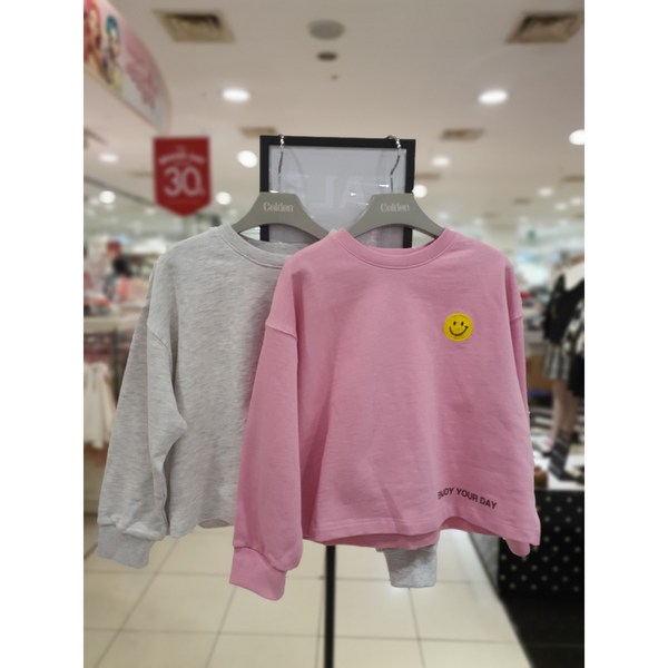 26번: 셀덴 [동아백화점 수성점] 봄신상 스마일 포인트 루즈핏 크롭 스웨트 티셔츠 EDMH23151-01