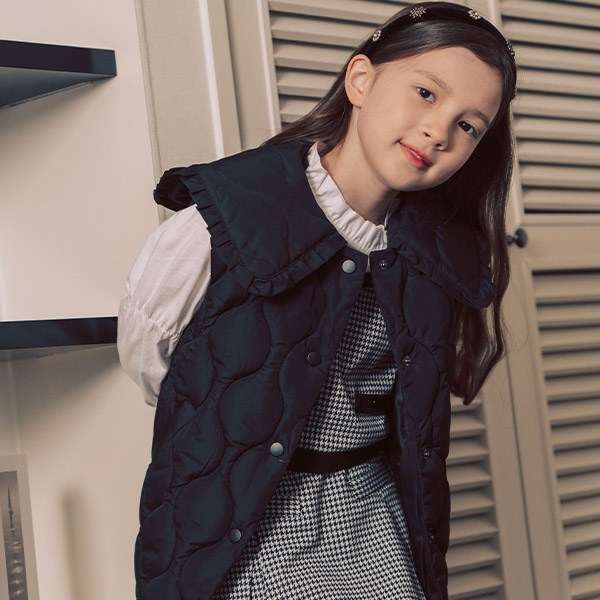 13번: 셀덴 [동아백화점 수성점] 23년 겨울 오버핏 세일러 프릴 빅카라 탈착 퀼팅 패딩 조끼 EDVW23W53-01