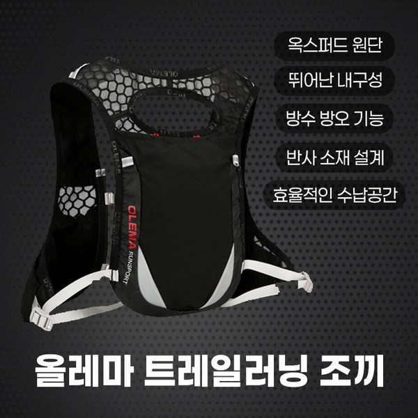 30번: 올레마 트레일러닝 조끼 마라톤 등산 런닝 베스트 백팩, 블랙