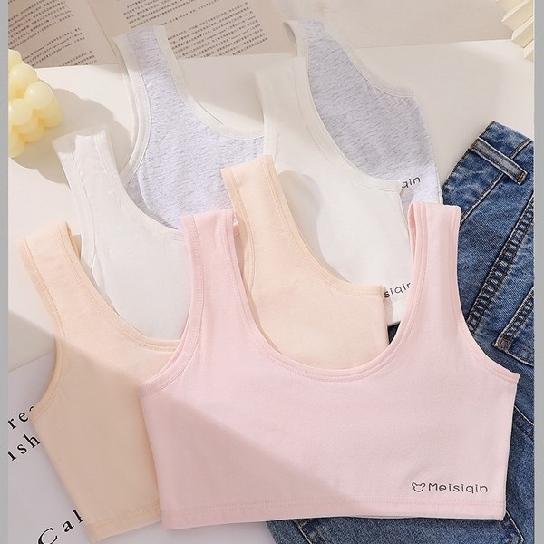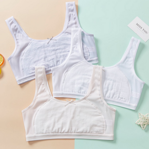 26번: [색상선택가능] 주니어 1단계 런닝브라 3P 세트 여아 브라런닝 브라 초등학생 중학생 어린이 심리스 브래지어 성장기 순면 심리스브라 런닝 노와이어 무봉제 여중생 청소년 속옷