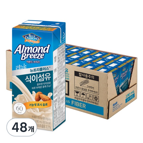 24번: 블루다이아몬드 아몬드브리즈 뉴트리플러스 식이섬유 두유, 190ml, 48개