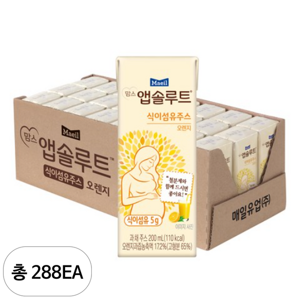 20번: 맘스앱솔루트 매일유업 식이섬유 주스, 200ml, 288개