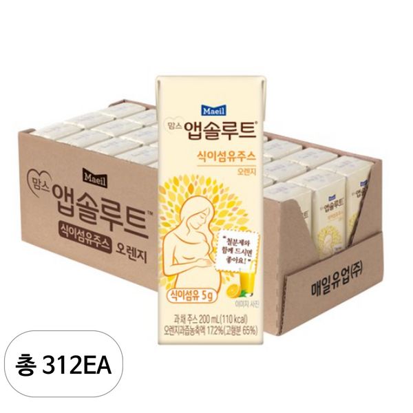 17번: 맘스앱솔루트 매일유업 식이섬유 주스, 200ml, 312개