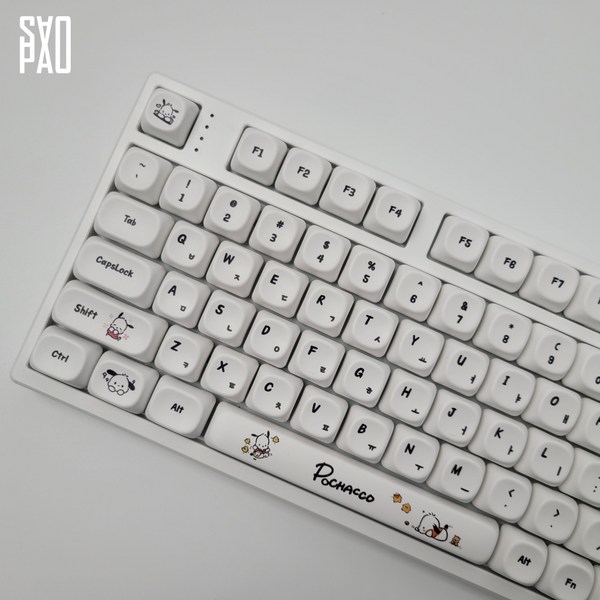 13번: MOA 캐릭터 한글 영어 각인 키캡 PBT 염료승화 MAC키(12가지), 한글_화이트 포차코, 화이트, 적축