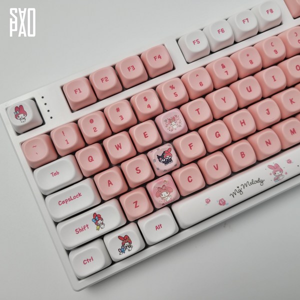 23번: MOA 캐릭터 한글 영어 각인 키캡 PBT 염료승화 MAC키(12가지), 영어_핑크 마이멜로디, 핑크, 적축