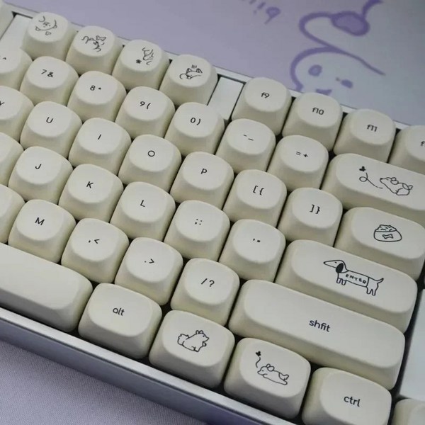 29번: 귀여운 개 테마 유백색 원형 키캡 124Keys PBT 열 승화 MOA 프로필 강아지 키캡 기계식 게임용 키보드, Puppy