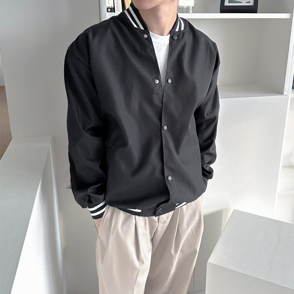 8번: [당일발송] 남자 바시티 자켓 오버핏 크롭 미니멀 스타디움 노카라 자켓 블루종 점퍼 (~2XL까지)