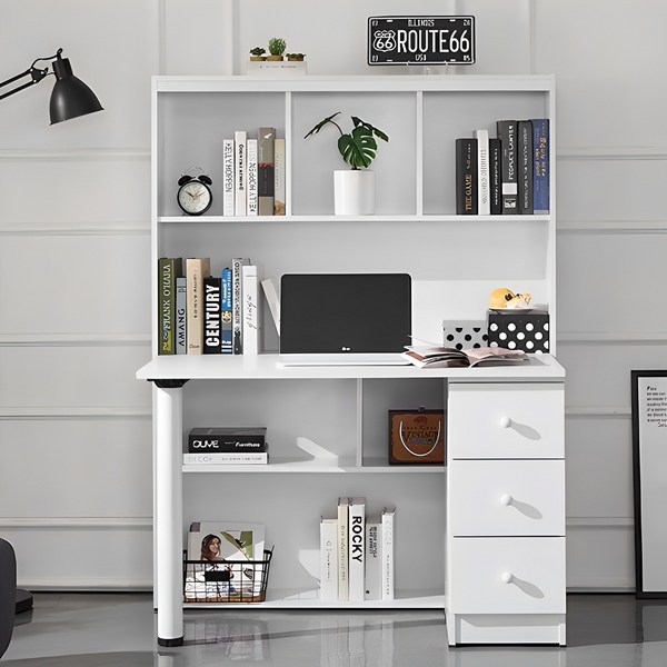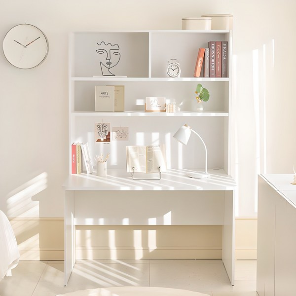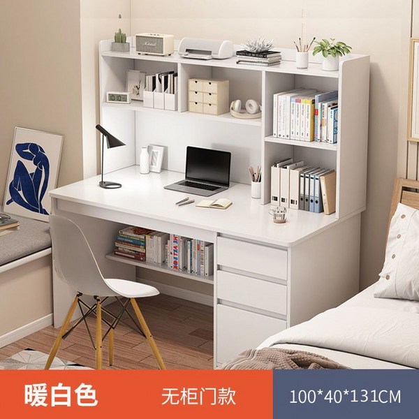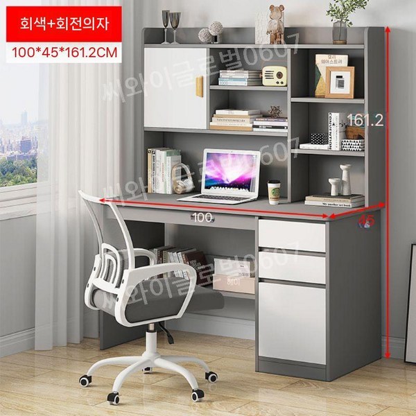 5번: 선반 컴퓨터 책상 올인원 LED 컴퓨터책상 게이밍책상 사무용책상 학생책상 서재책상 브라운/화이트 1인용 2인용 테이블 사이즈 120cm*60cm 고도 165cm, 화이트